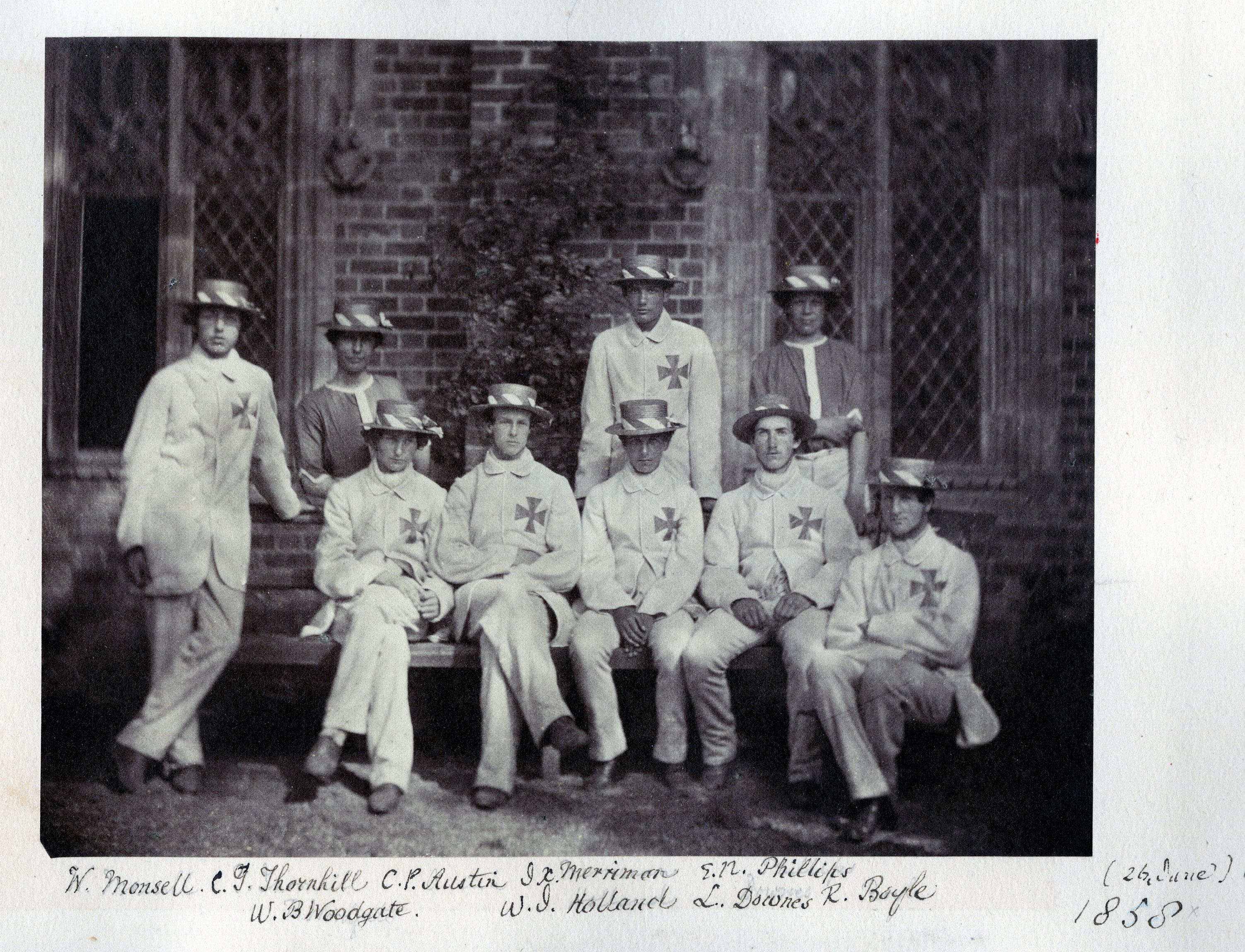 ![]() 1858. The first Radley crew to challenge Eton over the Henley course. They lost (just). The first crew to wear the Maltese Cross |