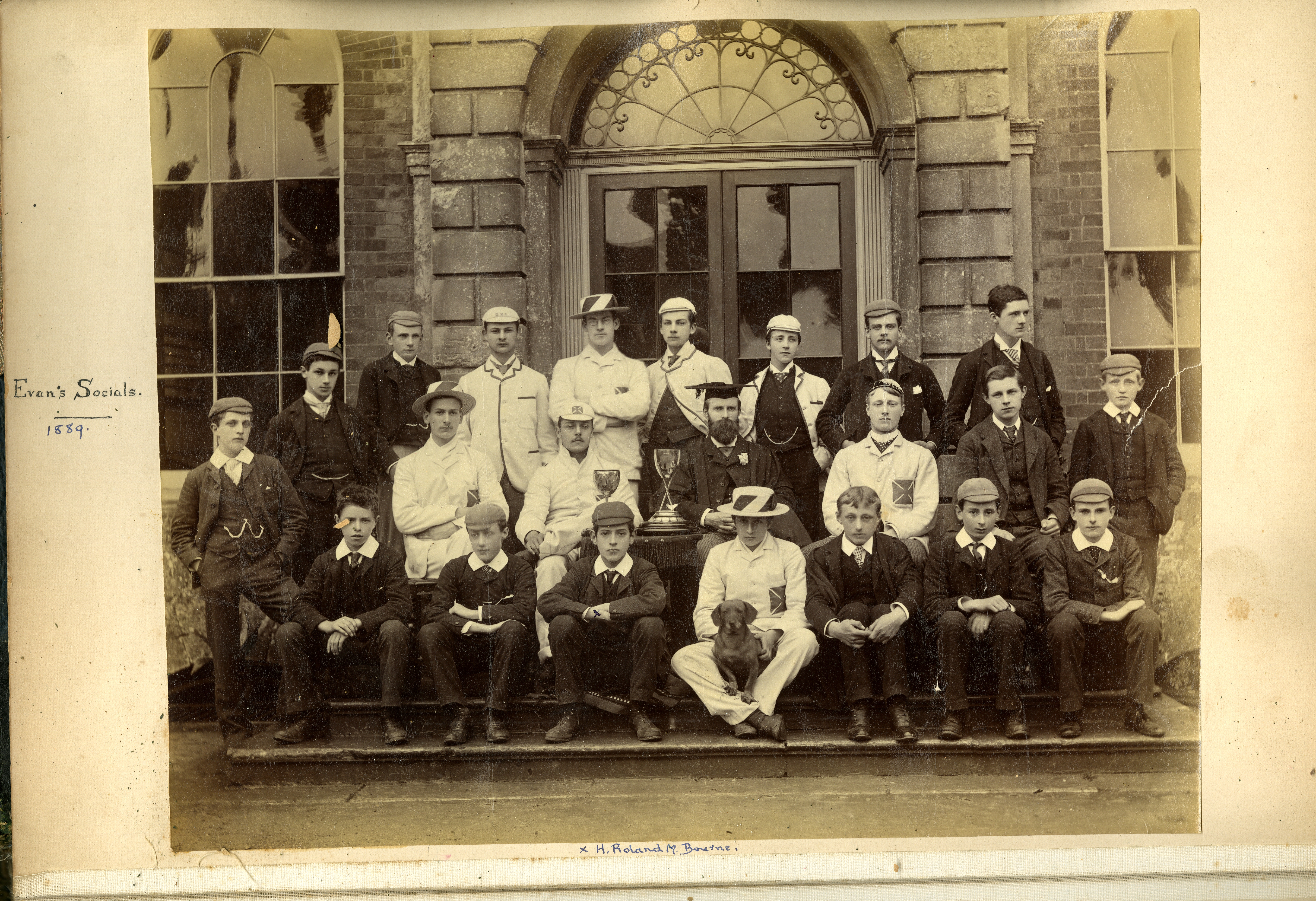 The Social Tutors do not work alone: live-in Sub-Tutors for each Social are recorded in the Grey Books and on Social photos from the 1920s. Most went on to become Tutors in their own right. Increasingly from the 1920s, the Tutor’s families appear in the Social photos, although Evans’s dogs are there in C Social’s photos from the beginning. And the Matrons, now Pastoral House Mistresses, – they have their own story, which will be told in due course…