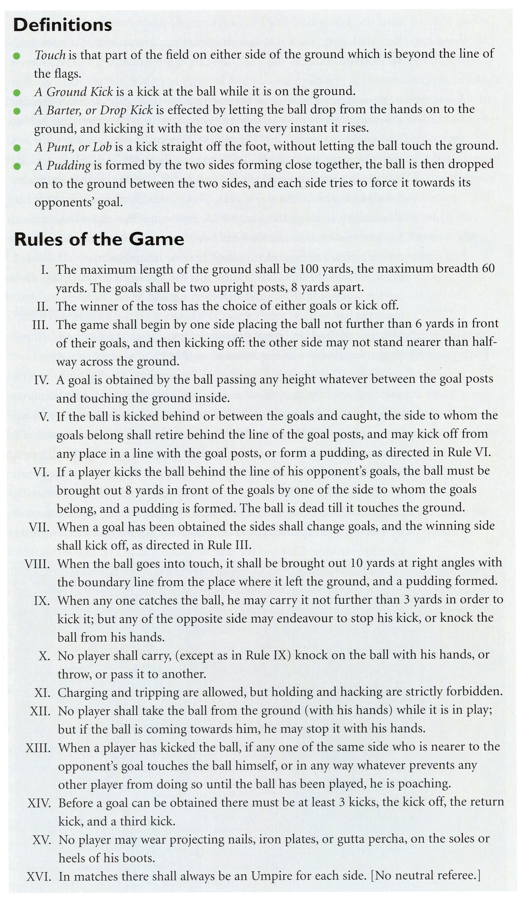 The rules of football as played at Radley College. Revised and re-arranged, October 1867.