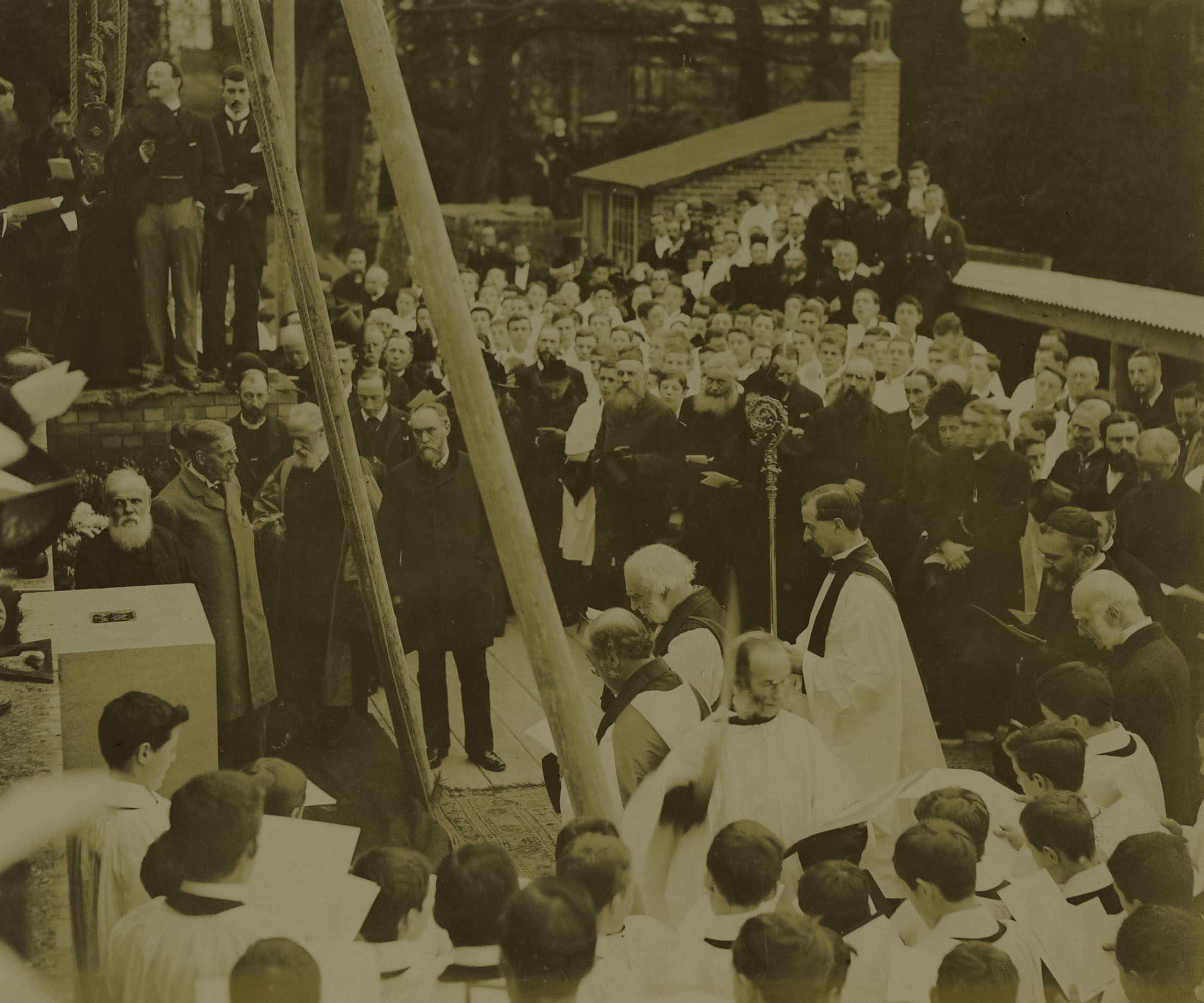 In 1893, this particular time capsule was located in a place that would only be exposed by a catastrophe or by a massive change to the building which its original depositors would never have imagined. And that belief that it would never be found must influence how we interpret its contents. This was not meant to be a handshake across time. It was put into its stone during (or just before) the ceremony in which the chapel building work was dedicated to God. Most of those at that ceremony may not have known it was there: it is not mentioned in any of the detailed reports boys and dons wrote for The Radleian. So even at the beginning, it was a secret.
